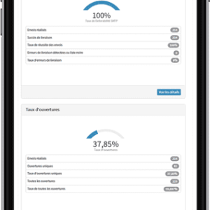 - Statistiques d’ouverture, de clic, bounce, désinscription etc…